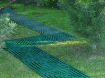 In homes with children, you can originally arrange the track with your own hands from scrap materials. A few ideas on the use of plastic gratings will help transform the yard and protect it from dirt. Grilles are easy to install on a leveled area covered with geotextiles. Some of the forms can be filled with soil, sowed with lawn grass, and other cells filled with sand or fine gravel. This design is quite reliable, the soil and sand will create the necessary strength, keep a clean and tidy view of the yard and paths.