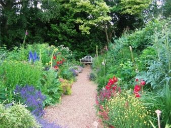 To do this, several times pass along the future route, visually representing the size of adult plants along the path, so that they, growing, do not interfere with the movement, and the roots do not destroy the roadway. From large trees the path should be at a distance of at least 2 meters. If there is no green space yet (or they have not grown up yet), sand outlines the contour of the crown in the adult state. Dimensions can be found in reference to the crop.