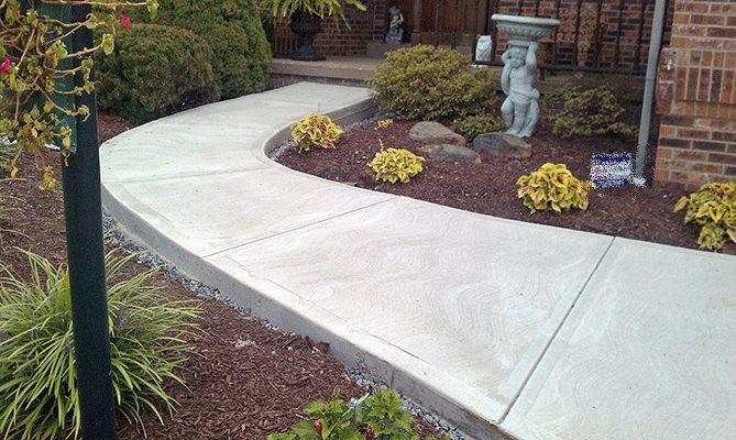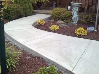 Simple concrete walkways are practical enough, but a network of dull gray straight lines is unlikely to please the eye. They should give some curvature, for example, a sharp turn over a hill can open a beautiful flower bed.