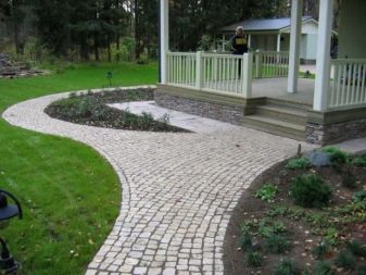 Paved paths of paving stones or cobblestones are the most preferred options for creating a solid pavement. These materials are durable, wear-resistant, their decorative qualities allow the use of paving in the front area.