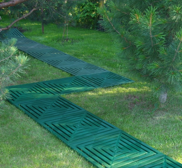 Plastic garden paths have become a new offer on the market of finishing materials. They immediately gained popularity with ease of installation, ease of maintenance and low cost.Colorful plastic covers are sold in rolls or modules that are assembled like a designer. This type of coating is not so durable, but it performs well as an anti-dirt function. Rolled tracks in their summer cottage to lay the forces even a pensioner.