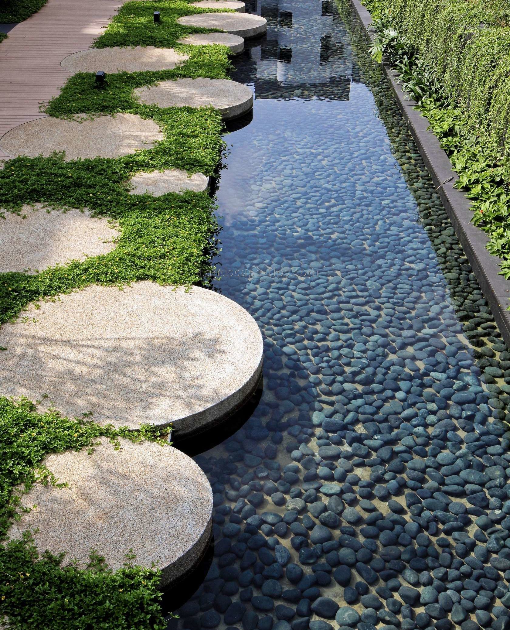 The design of the paths has the same bright uniqueness. Japanese style. If the high-tech style sharply differentiates between the natural environment and the human environment, the Japanese style incorporates the human into the natural landscape. Materials of decoration here are natural stone and wood, plants and streams. Paths combine with bridges and recreation areas in the classic Japanese style.