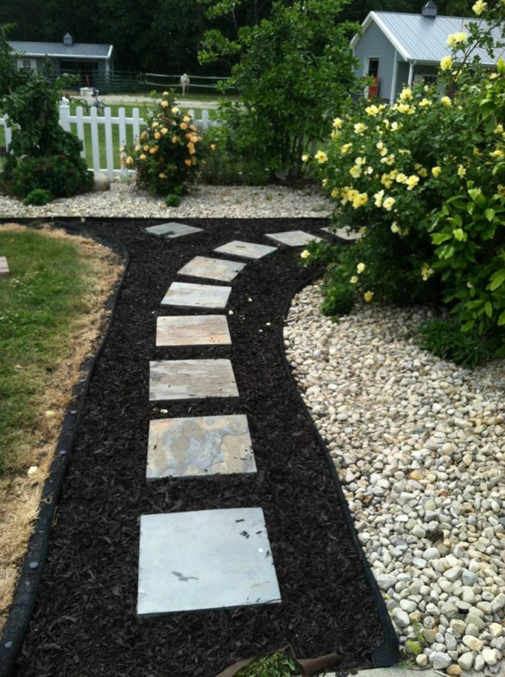 Pedestrian paths in the country can be beautifully combined from different materials, the main thing is to take into account the general style of the site design.