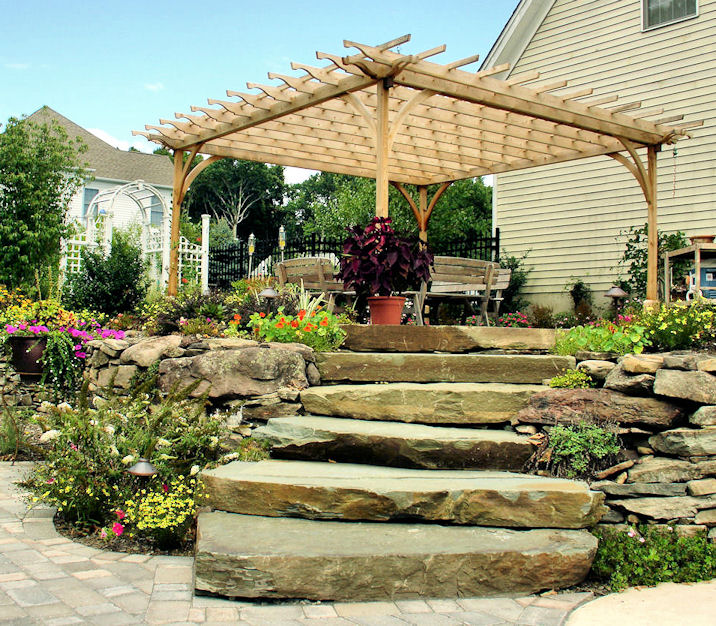 Bridges and steps will add color to the walkway and the garden, they will ennoble the steep terrain of the site, help decoratively beat the cliff or the hill.