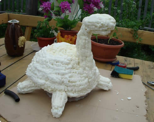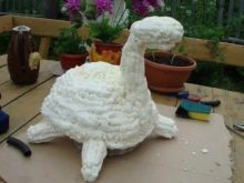 Interesting options are obtained from the foam. Such garden sculptures will be reliable, waterproof and durable. It is these qualities that are important for outdoor decoration, as it must successfully overcome bad weather, sudden temperature changes. Polyurethane foam will help make, for example, a funny snail, a graceful swan, a bright dolphin, as well as other favorite characters.