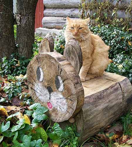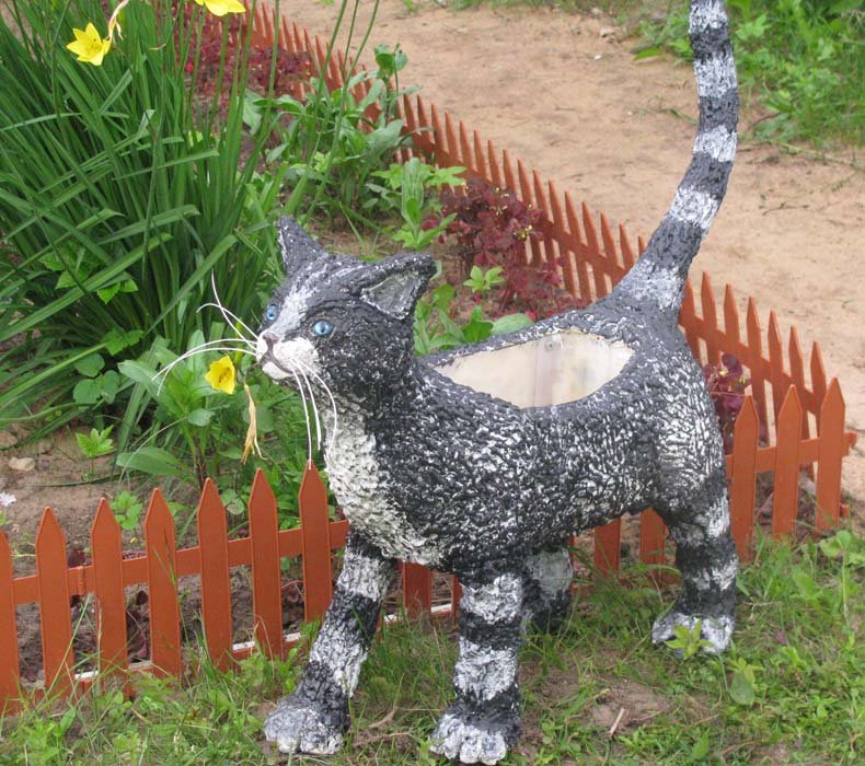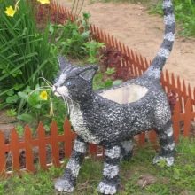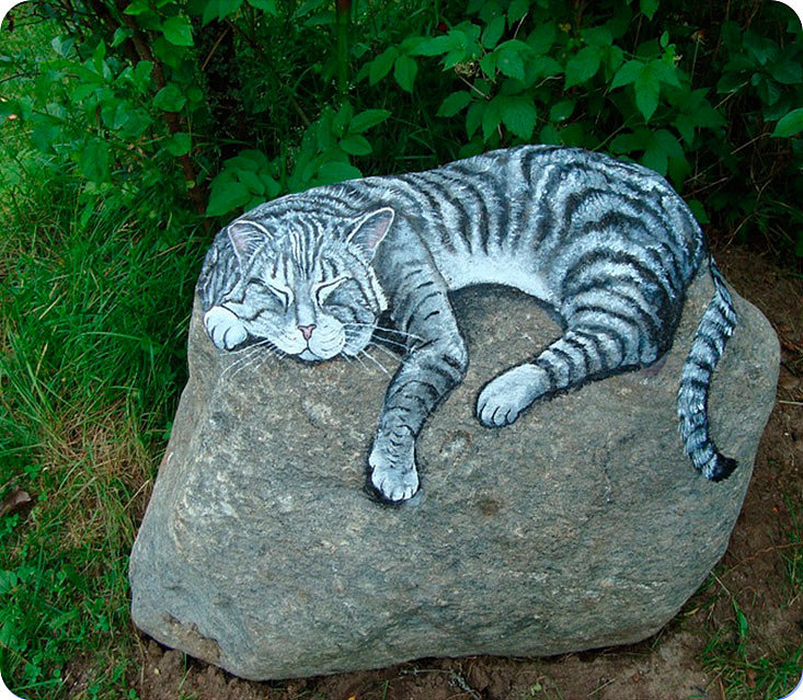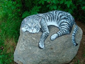The most simple and at the same time spectacular version can be attributed to the figure of stone.You can choose a suitable form that resembles an animal, and draw all the necessary details with paints. So can get a cute cat, which is cozy settled on the lawn in front of the house. At the same time pay special attention to the size of the product. It should be optimally combined with the entire composition.