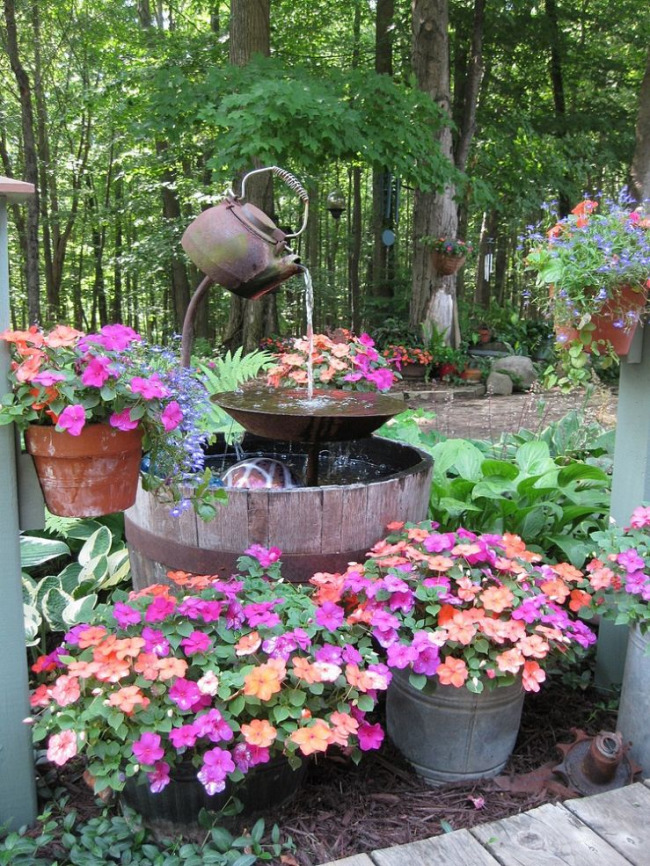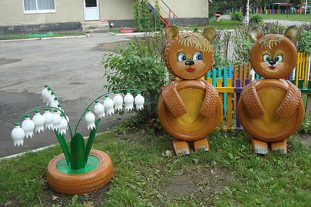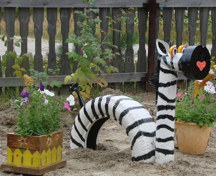 You can also use a variety of improvised material. Among such popular things can be distinguished basin, options of tires, wire, plastic bottles, silicone models, figures of metal, concrete, artificial grass, lawn. All of them will organically complement your garden.