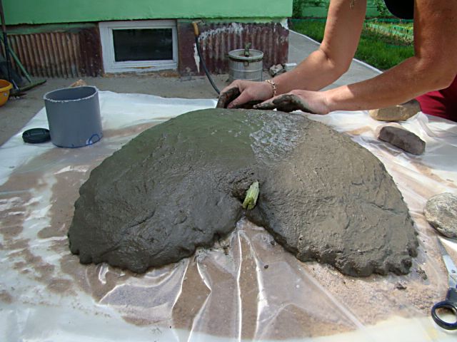 You can create attractive options using cement. The solution can be poured into the finished form or cover them with a specially prepared frame. In the second case, you should also add PVA glue to the plaster for plasticity.