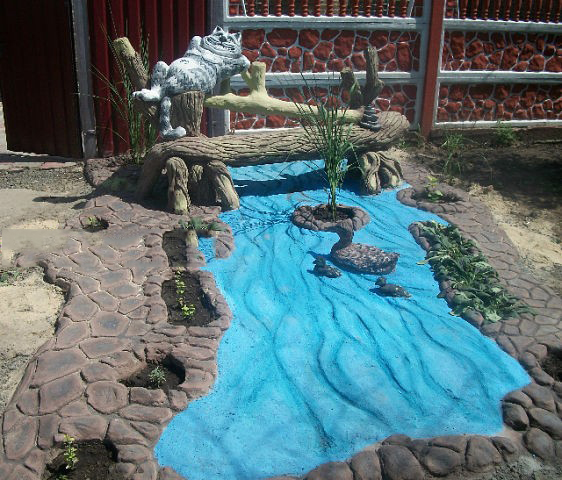 - There should always be a sense of proportion.Try to emphasize the personal details of natural details: stumps, roots of trees, flower beds, flower beds, streams. If there is a children's area, then it can be successfully decorated with fabulous characters.