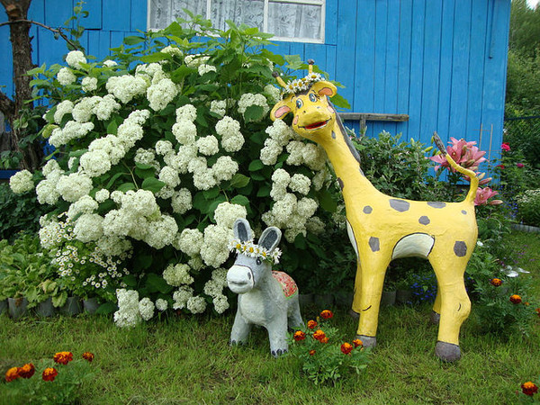 To give will be the most optimal options that appeal to you. It is necessary to choose those figures that you enjoy, because you will see them every day. It will be twice pleasant to see the products created by yourself. Excellent options are obtained from foam. This material is quite light, perfectly treatable. At the same time, to place the figure on the ground, it is necessary to fix it with cement mortar.