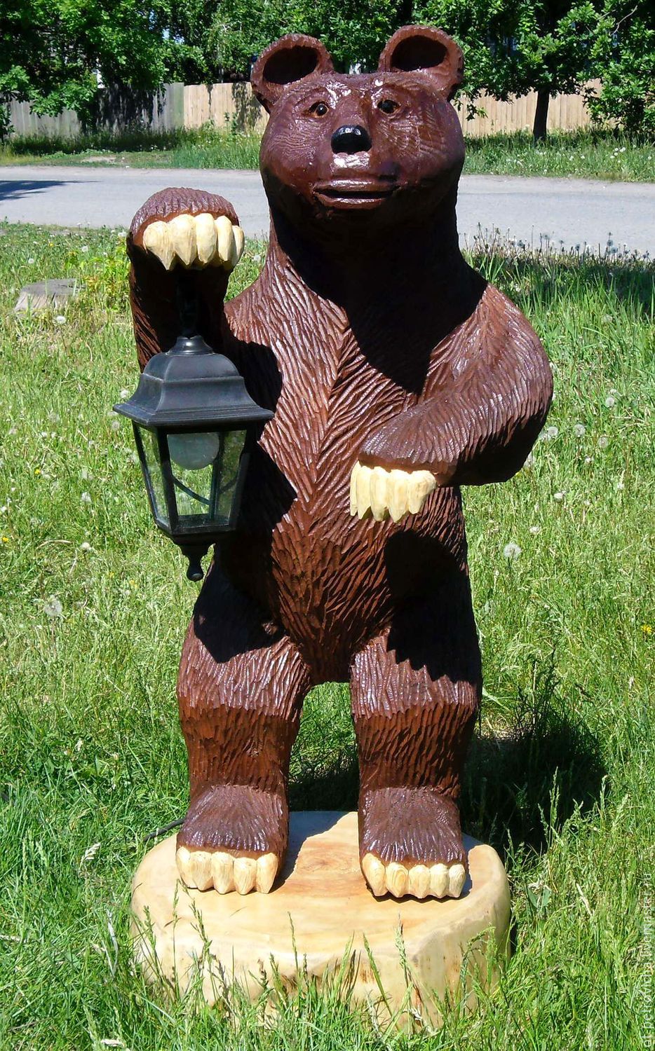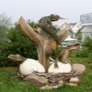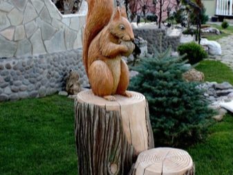 A common material for creating garden sculptures is wood. It is suitable for the image of large and small figures. Often this material is chosen in order to portray the characters from fairy tales (Russian, foreign). To do this, use pine, aspen, oak or beech. In order for such works to preserve their original appearance as long as possible, they are impregnated with protective compounds and varnished. Sometimes ordinary snags, tree roots are used.