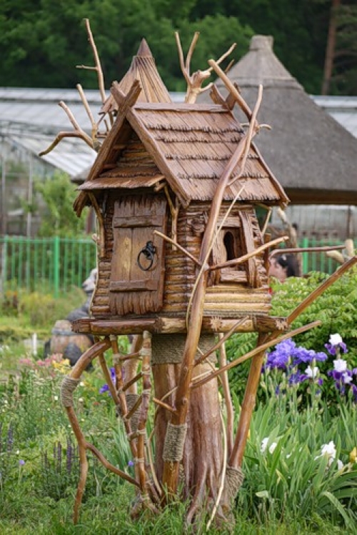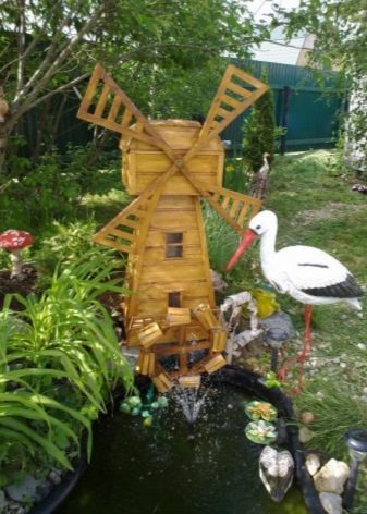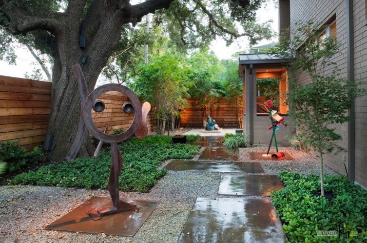 - Art sculpture of the summer garden. May have vague abstract forms, extravagant appearance. To create such elements, metal, plastic, cement, plaster and even assembly foam are mainly used.