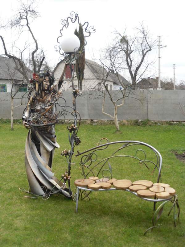 Forged products can be a highlight in the landscape, if they comply with the overall design concept. You can independently make a sculpture of wire and cement, as well as other available materials.