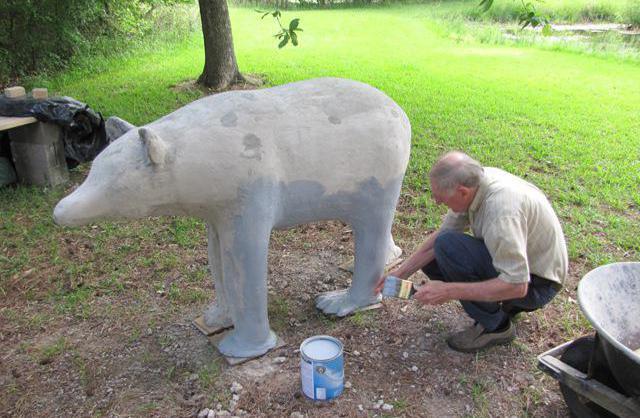To create a solid sculpture of concrete, prepare a solution of cement and sand, mixing them in a ratio of 1: 3. Of the materials that are on hand, prepare the frame of the future figure. For small products will be quite hard wire. On such a basis layering of the solution, giving the desired shape. After drying, the sculpture must be primed and painted.