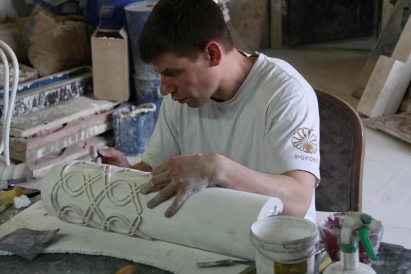 Luxurious sculptures are obtained from polyresin. This is an artificial stone, which consists of acrylic resin, crushed natural stone and other additives. This material is resistant to moisture and temperature extremes. A common material for creating sculptures is gypsum. It is inexpensive and easily handled. The figures, which are obtained from this material, are fragile, but with careful care can serve for a long time.