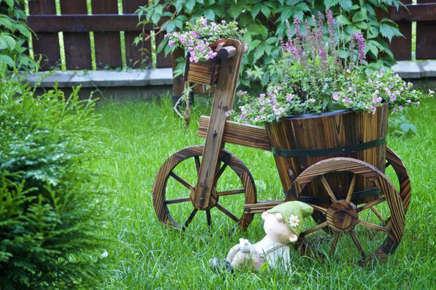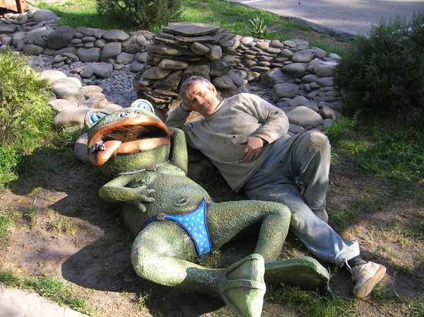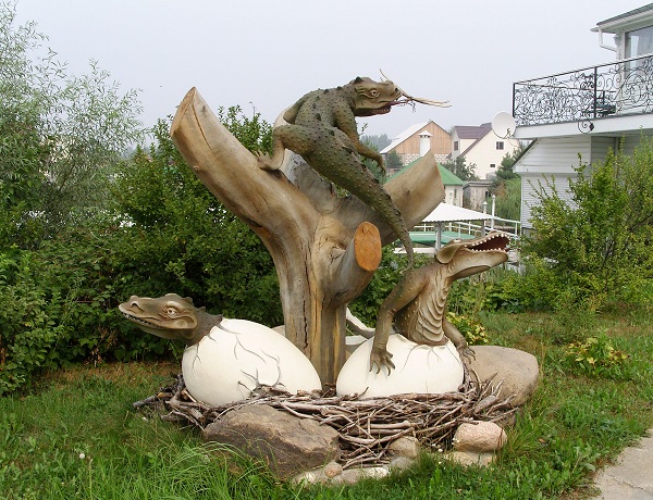 Handmade sculpture made of plaster, wooden figure,construction of car tires or concrete masterpieces, combined into a composition, can be an example that will be adopted by many. Especially if you post photos in a social network, demonstrating in stages every step of production.