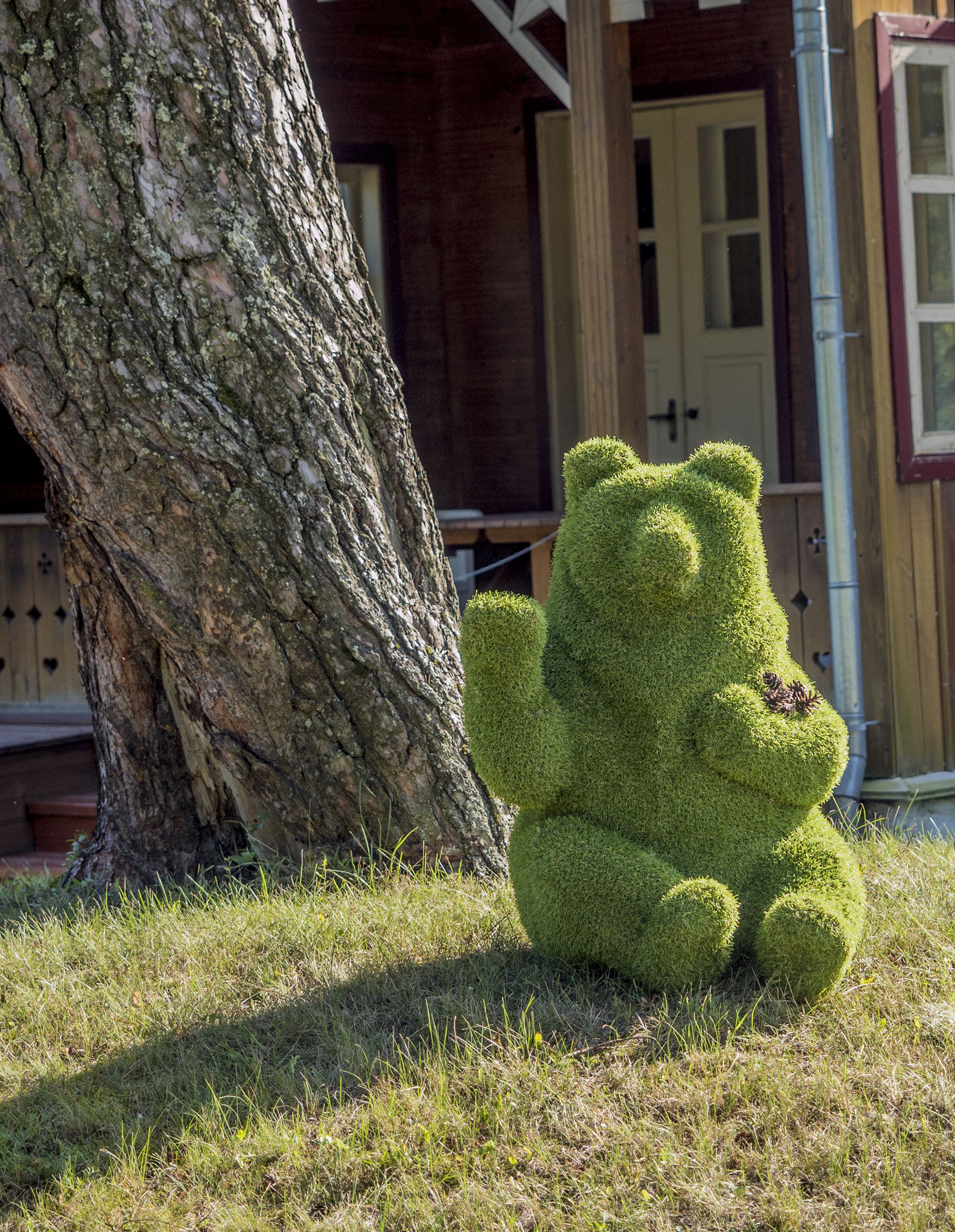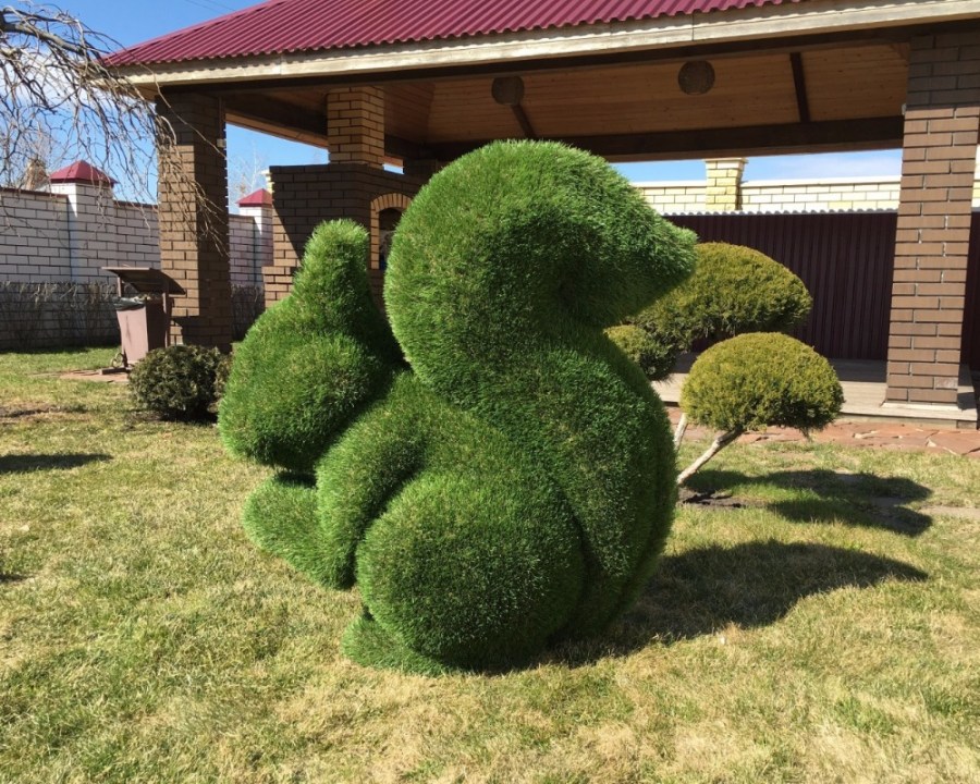 Decorative figures from bushes and trees also look interesting, although they require constant care.An alternative can be sculptures made of artificial grass, which can be bought and put on the site. They will perfectly fit into the green corner of your site, while not requiring special attention, for a long time maintaining the original elegant look. You can order or perform their own sculpture of metal.