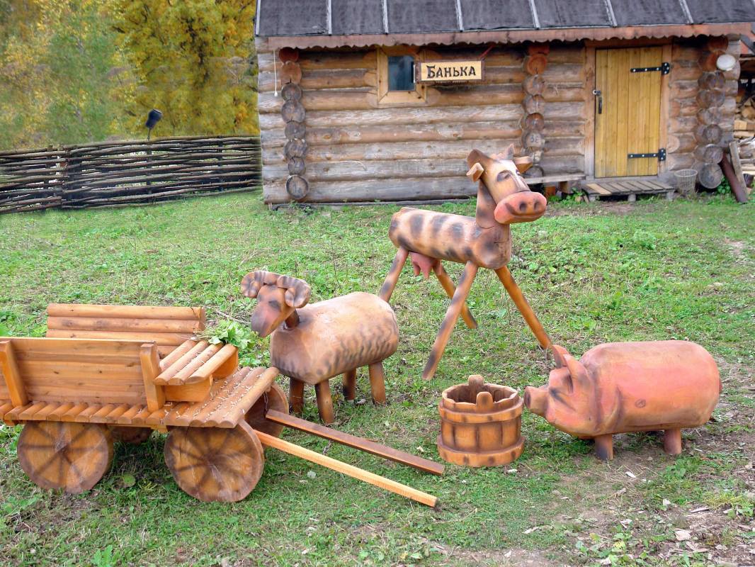 - Small sculptures. They, as a rule, serve as a background for more large-scale (main) figures.Can be made of wood or polymeric materials. Relatively small in size.