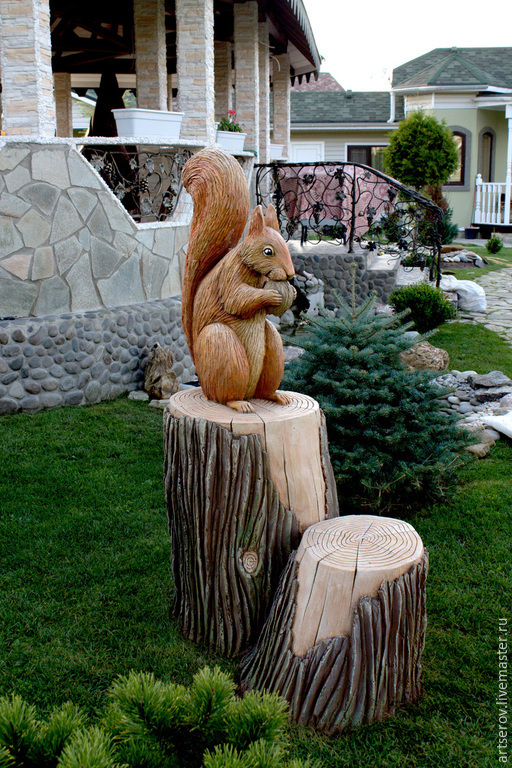 More solid sculptures can be made of concrete, using ready-made forms or using formwork. Compared with plaster or wood products such decorations will last much longer, although concrete is not eternal. It collapses under the influence of temperature changes. However, for some time such a statue will delight the soul.