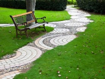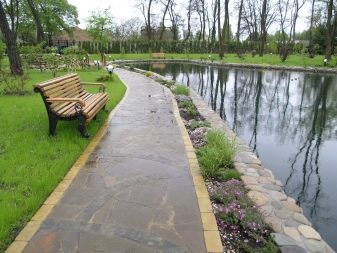 - On both sides of the path you can install lights, benches and garden sculptures. Borders can be made of plants, and flower beds of non-standard forms are often used to design the central part of the trails;