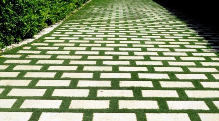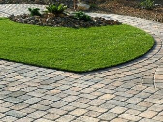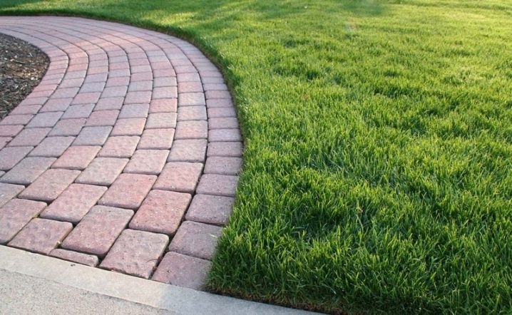 - an example of the correct location of the garden path relative to the level of the lawn - the ground is not washed off the path from the unpaved areas, and the tiles remain clean even in the rain;
