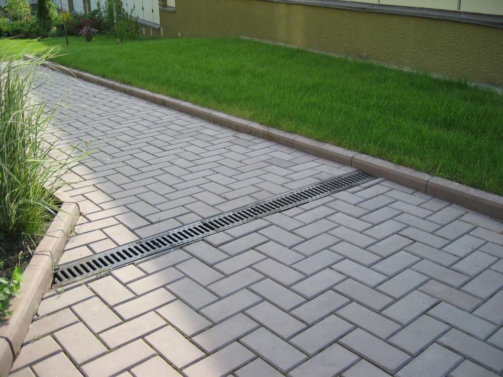 - When installing curbstone, the path should be equipped with a drainage system and not interconnect the interlayer joints. Otherwise puddles will form on the path, and with time the plates will begin to collapse.If it is impossible to install a drainage system, the alley must be equipped with a storm drain or a chute;