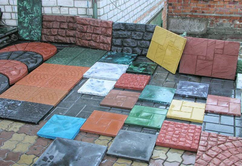 The technology of uniform coloring of concrete products allows you to create pavement tiles of different colors and shades. It is interesting to look black models, flooring under wood and tile, imitating parquet. Due to the huge color palette there is a possibility to choose the material for any style, purpose and place of installation.