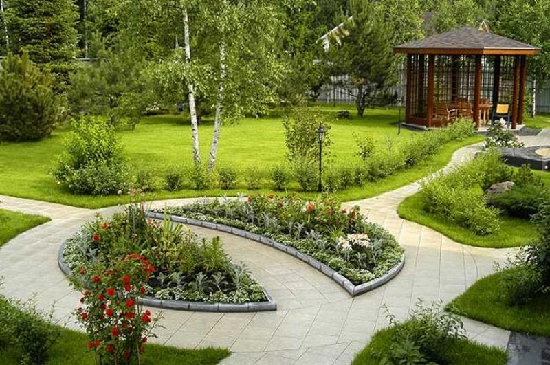 Laying of paving slabs at the dacha should be carried out according to a previously drawn up plan, the development of which takes into account the terrain, the number of buildings, the presence of small architectural forms and the location of independent elements of landscape design. For a harmonious combination of decorative objects with paths, it is necessary to follow the following rules: