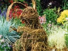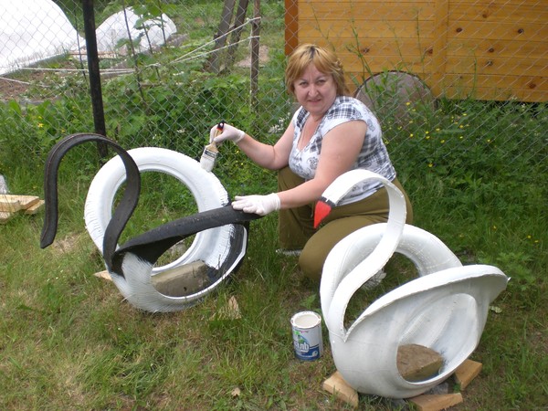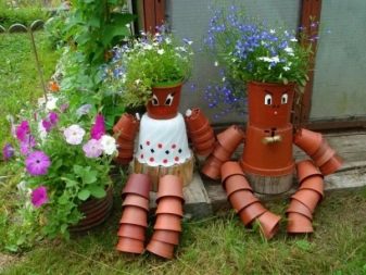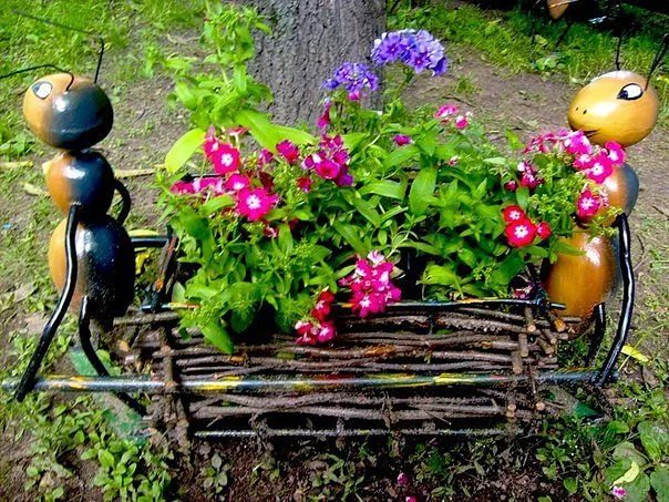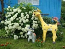 You can use and scrap materials - for example, old pantyhose. Of course, such products look simple.They certainly are not suitable for the palace style, but they will lift your spirits and become a wonderful highlight of your site. Many choose to create garden shapes ordinary plastic bottles. Products can be any, the main thing - do not make a mistake with the choice of paints. For such surfaces it is better to choose oil or acrylic paints.