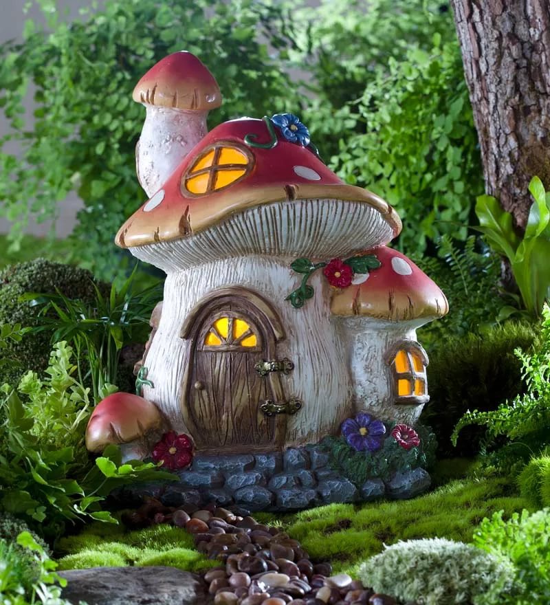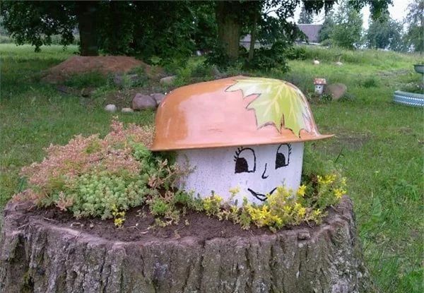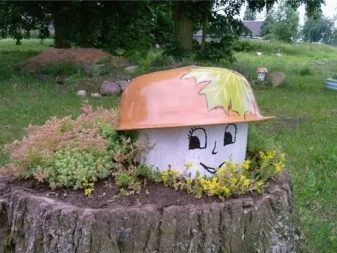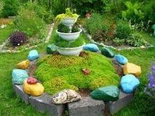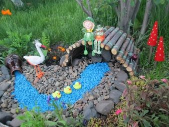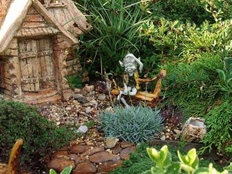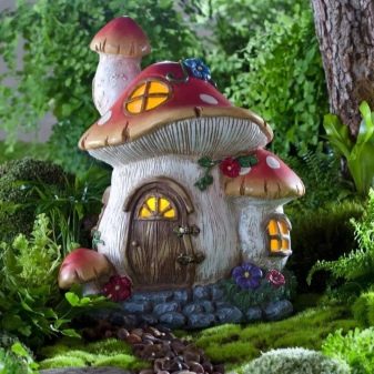 To complement large pieces, you can use small items (like mushrooms). They will naturally look in the natural environment. Suitable option - toadstools with bright hats. This is the case when harmful fungi can be helpful. The fungus may even have eyes: in this case, it can be safely called the main keeper of your site. On modern sites you can see a variety of figures: fairy-tale characters, pets.