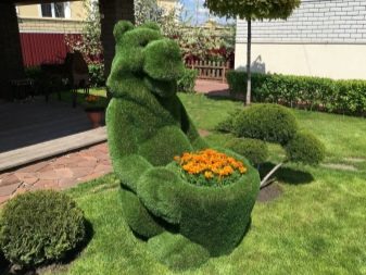 For such works of art requires regular care, you need to constantly maintain the shape of the shrub, otherwise the appearance of the figure loses its aesthetics. To obtain complex structures, use a special frame. It allows you to create certain silhouettes. Frame shapes do not look different from ordinary ones, but they are created much faster.