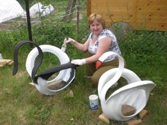 Some people prefer to create figurines from plywood, cutting out the necessary silhouette and painting what they want. Such decorative elements are well suited for playgrounds, verandas. It is interesting to look at the garden plots of foam products, but to create them is very difficult. This requires certain skills and artistic flair. Such materials are easy, so you will need to take care of a sufficiently heavy and rigid frame to create them.