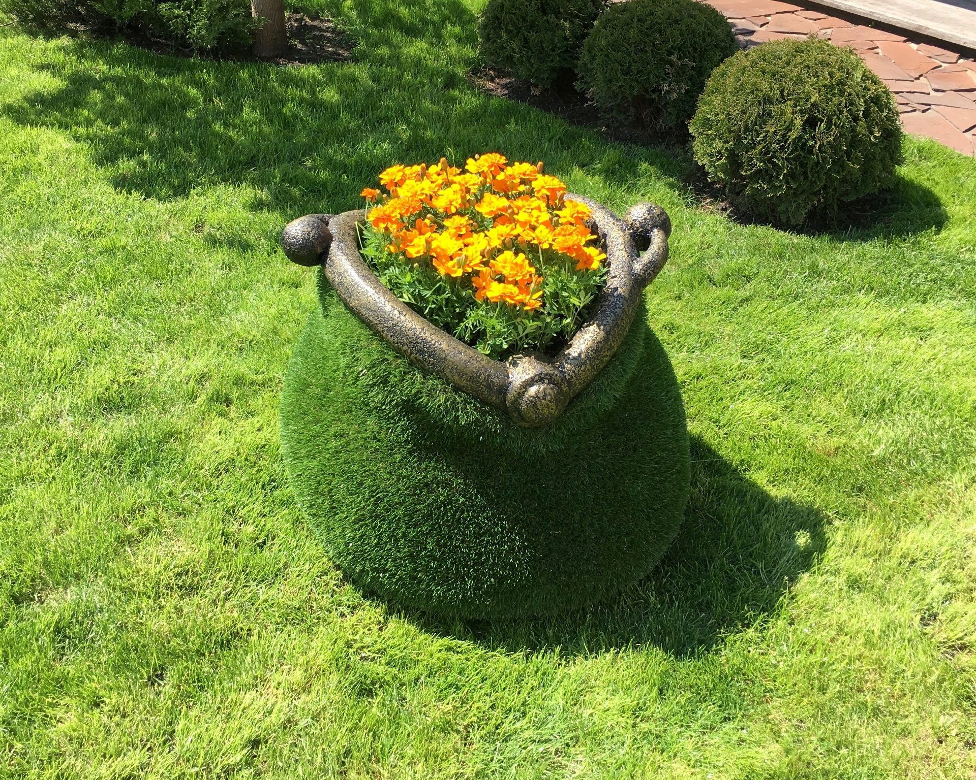 This option is suitable for people who do not have an ordinary lawn, and they want to complement the garden with an interesting accent, making the decor as harmonious as possible. Artificial grass does not need watering, cutting, which is convenient for site owners. Products from such material are easy: they can be moved without using special equipment and someone's help.