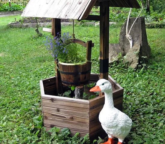 - Masking unaesthetic places. It can be, for example, dark thickets, which can be hidden with the help of a beautiful well.