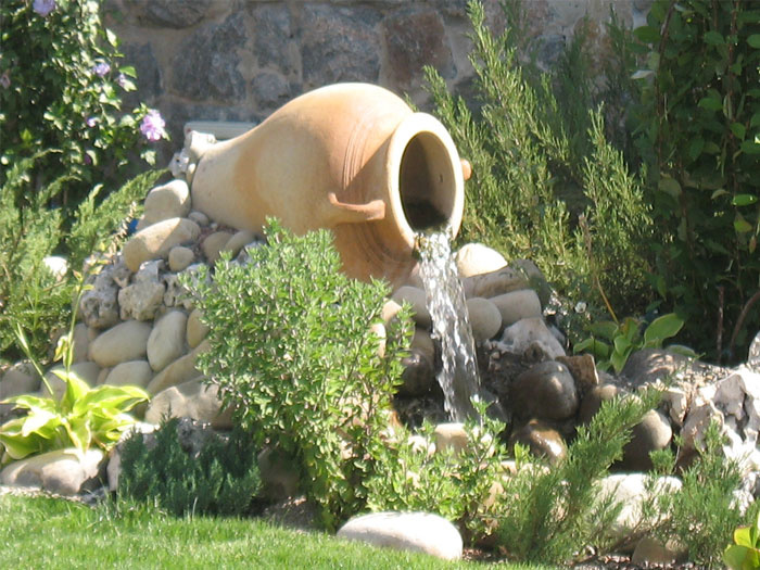 Do not use bright ceramic and metal products. If you want to arrange the territory in the Mediterranean style, you can choose a stone.