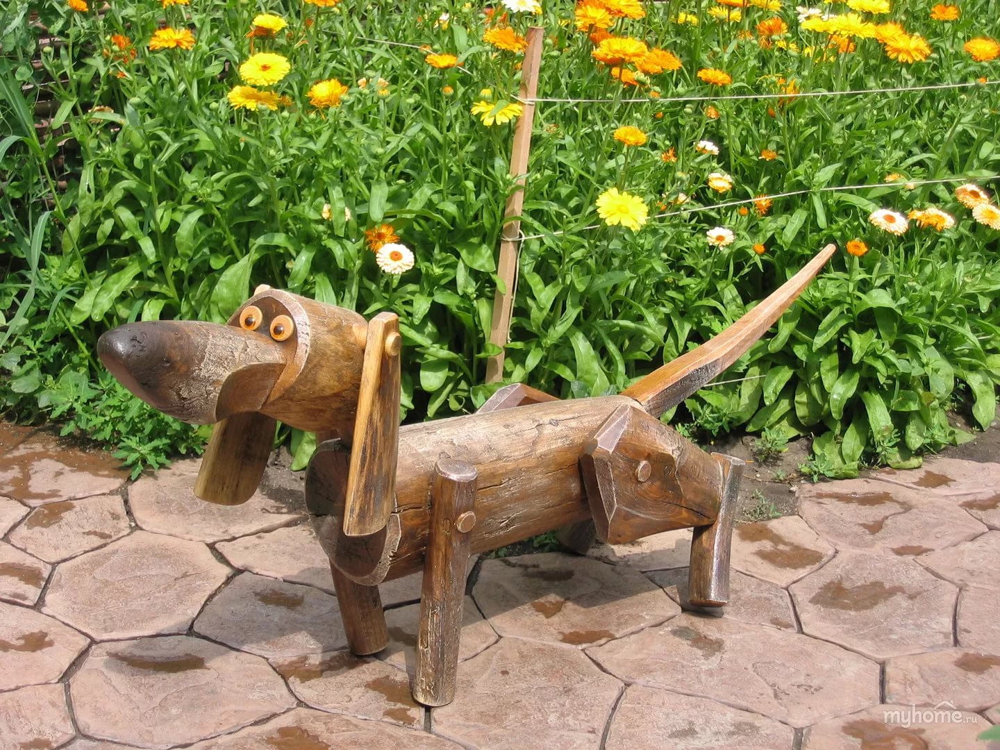 Since wood is a natural material, it is suitable for a wide variety of landscape designs. Often wooden figurines are copyrighted, such products are distinguished by high prices.