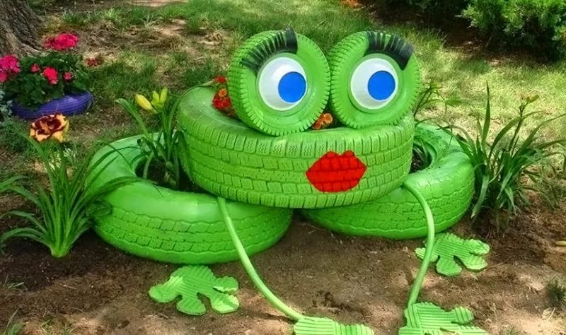 An interesting option is the use of car tires. Since this material is affordable, it can be found in many areas. Rubber is resistant to temperature changes, so the products of tires are long enough. The only negative - they need to regularly apply paint.