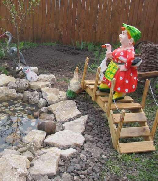 Adherents of the romantic style can use fountains, flower arches. Such sites will decorate swans, angels. By choosing a folk style, you will be able to fully express your creative beginnings. It will be possible to create the figures yourself by writing them. Ceramic products are well suited for such areas.