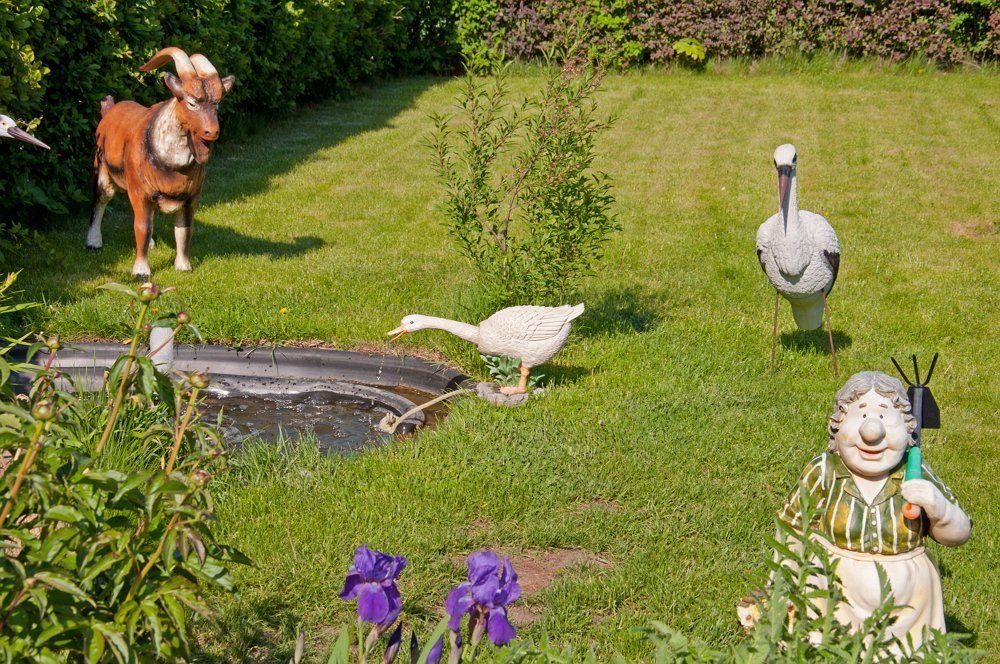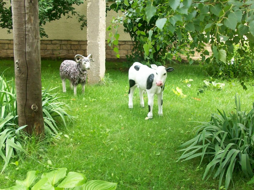 If your cottage can be compared to an ordinary rural house, stop choosing fantastic characters, funny people, cute animals, mushrooms. However, you should not be too zealous. Of course, it is necessary to take into account their financial capabilities. If they are limited, decide for yourself whether you are ready to give money for expensive sculptures. After all, beautiful garden figures can be quite inexpensive: they can be made with your own hands.