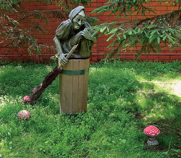 Popular garden figures can be called gnomes. They look quite nice, so it is not surprising that many dacha owners choose them.Feel yourself in a fairy tale with the help of other heroes. To decorate the garden may, for example, Baba Yaga. This character is famous for its negative actions, while for a long time it was believed that the grandmother lives on the border of two worlds and does not allow negatively-minded entities to harm people.