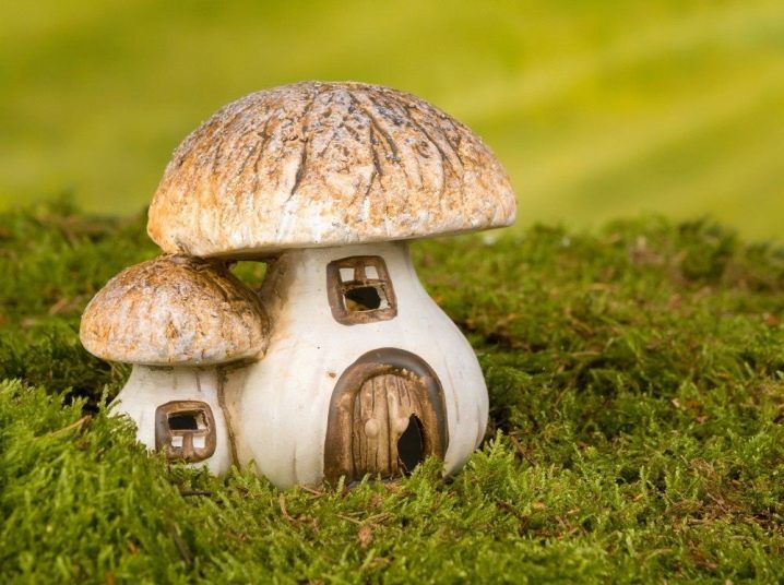 Mushrooms, made in the form of houses of little men, will give a feeling of a fairy tale.