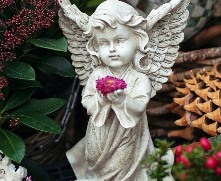 Forms of garden figures are various and submit to the main idea of design. They can be classic, reminiscent of small statuettes, either geometric or non-standard. It all depends on the taste preferences of the owners of the house. For example, an angel symbolizes grace, peace. Such a figure will complement the flower arch well. With it, you will feel as if you are in the Garden of Eden.