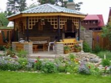 On the local area there is not only a garden and a vegetable garden, which is often found in country houses, there must be a place to rest here. Here you can sit on a hot day to enjoy reading, invite neighbors or friends for dinner and just relax in the shade. This role is played by the arbor, which can be crowned with a flowering plant or grapes, or you can make an ordinary shed for it. There are no strict rules about this, it all depends on your wishes, The main thing is that everything looks harmonious.