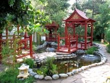 - You can choose the Chinese style, where the main attribute will be a landscape garden. Water must be an indispensable element in the landscape, as it is a kind of symbol of oriental style. Neat bridges are stretched through artificial streams and ponds. Use the jugs and water lilies for decoration.