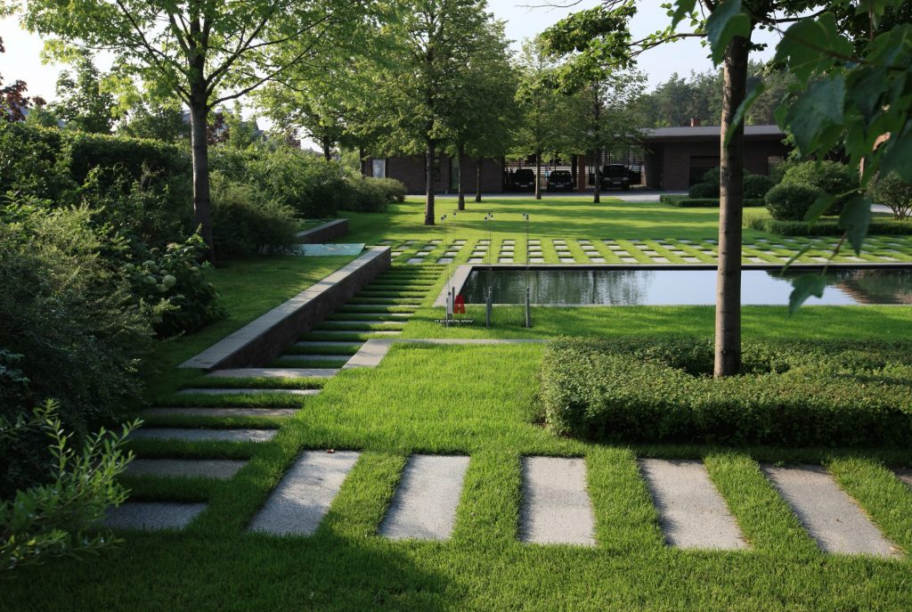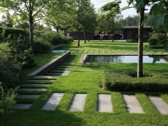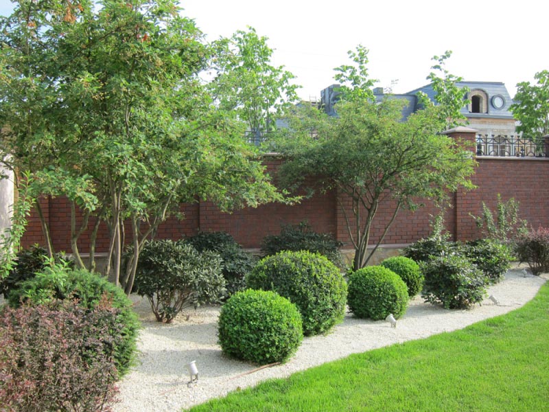 - In the modern version it is supposed to use yew, boxwood and stone decoration of the territory. Paved paths will look favorably in combination with coniferous vegetation;