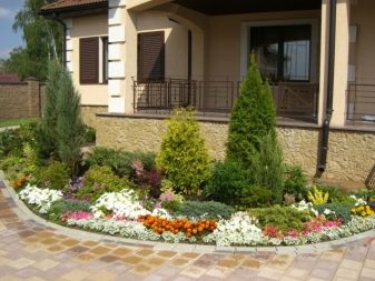Registration of the territory with coniferous plants will be one of the best solutions. In addition, they look fresh all year round and do not require serious care. There are several principles to follow when planting flowers and shrubs. If you want to organize a flower bed near the house, make sure that the color scheme matches the wall covering.For large areas, it is better to decorate with bright large flowers, which have large sheets, and for small areas, small-leaved plants of pastel shades are suitable.