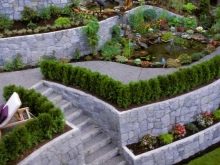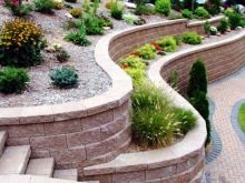 - Use terracing and steps directly on the slope for plant breeding and vegetable crops. It looks original and works efficiently. It is important not to forget to build retaining walls for ground terraces so that they are not washed away by rain and not destroyed by wind.