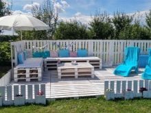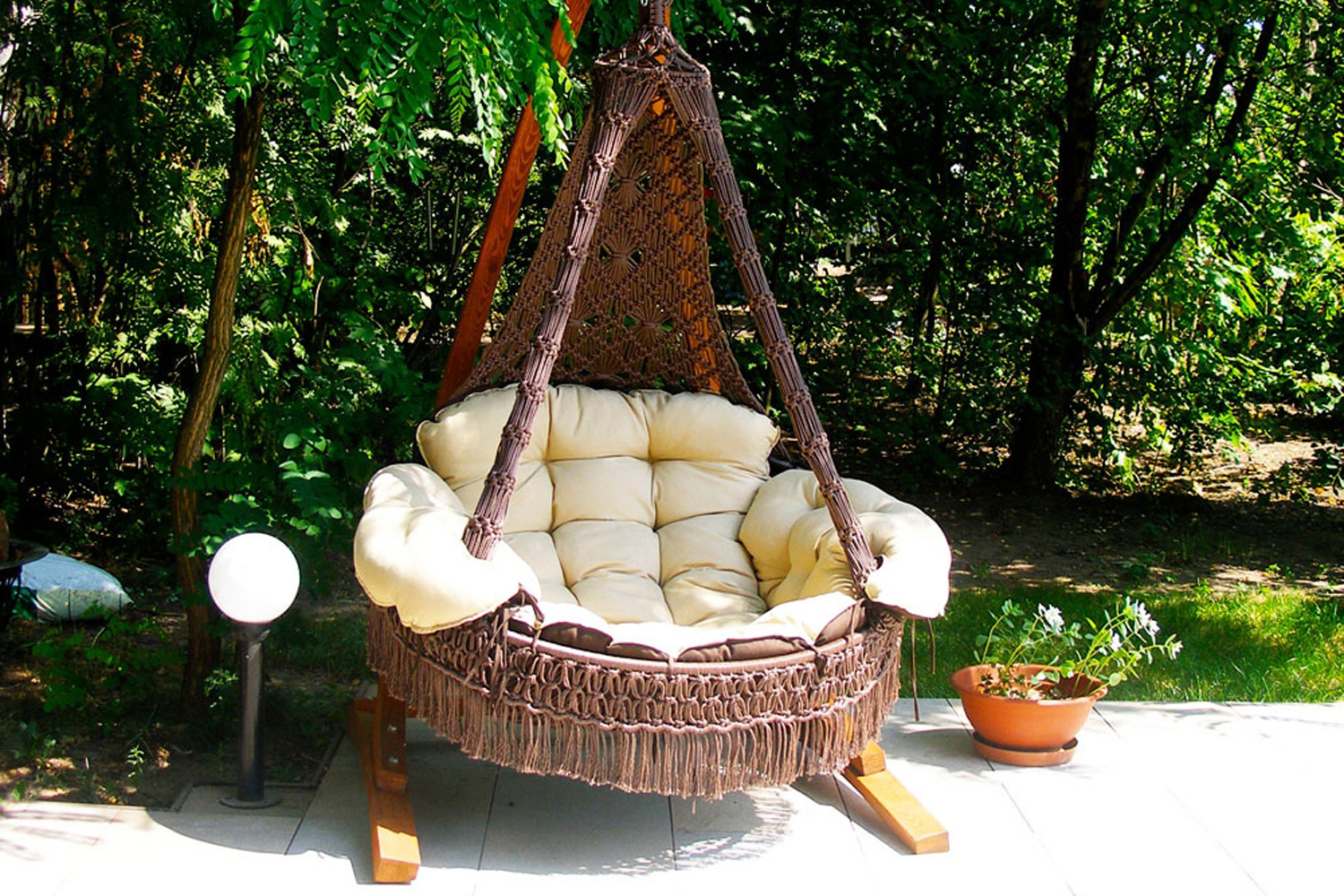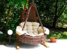- Interesting furniture. It can be either wicker chairs or homemade chairs made from old tires or stumps, benches and tables made from pallets.Even the hammock in the recreation area in this case can be attributed to unusual furniture;