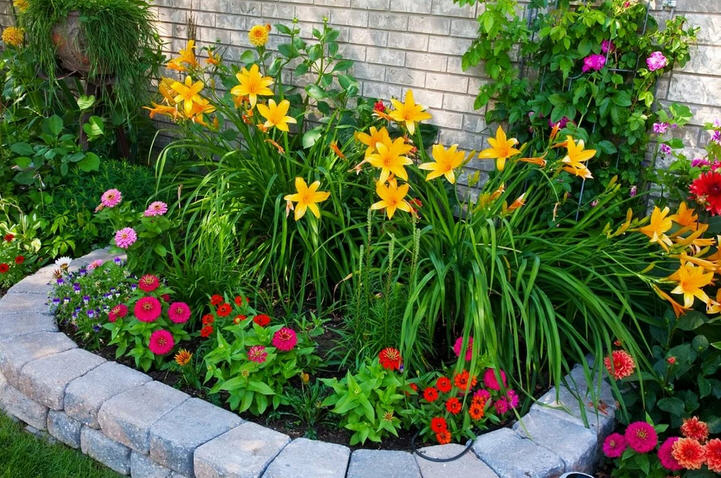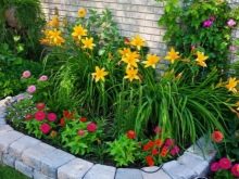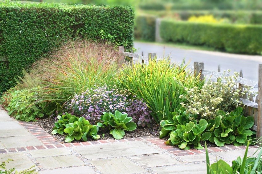 The main thing is to choose a nice looking color and resistant plants. For example, peonies for this purpose will not work because of the short flowering period.