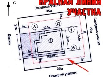 - Accounting for the "red line". The red line is the location of houses along the street. As a rule, it is required in country and cottage settlements, and in ordinary garden farms it is not necessary to observe it. The same location of all the houses is necessary so that the buildings do not cast a shadow on the adjacent areas.